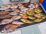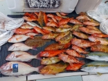 オニカサゴ 20-42cm 2-14匹 ハチビキ 48cm 1本 アマダイ 40cm 1匹 ウッカリカサゴ 25-35cm 8匹 アヤメカサゴ 16-25cm 9匹 ヒオドシ 25cm 1匹 6名様で鬼カサゴ乗り合い。 東海釣りガイドさんの雑誌取材。 釣...