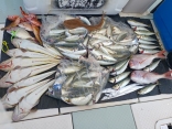 大物&アジ狙いで出船させて頂きました。大物狙いはジギングと小アジノマセの二刀流でチャレンジして頂きました。今日はメジロが大量入荷した感じで、時合にはどちらで狙われてる方にもメジロが連続ヒット!青物は余裕の全員安打をして頂く事が出来ました 今日も小アジノマセ...