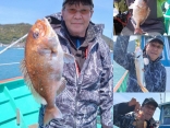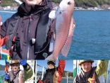 3月27日(金) 宇陀市からお越しの下泉さんたちの引本湾内タイラバゲーム 通し釣りでの釣果です! マダイ、シロアマダイにマハタ等を釣り上げました! 本日はどうも有難うございました。 水温は16.3℃でした。