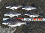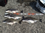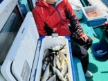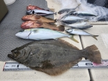 瀬川様 アマダイ35cmまで 5匹、アカタチ44cm 1匹、ガンゾウビラメ24cm 1匹、他ハゼ、エソなど。 砂煙を上げるパターンで時間帯により小さなアタリがたまに出ていました。