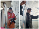 港からすぐのポイントでF3~F5サイズのタチウオが上がってます。夜明けから納竿まで当たりっぱなし!1人10本...