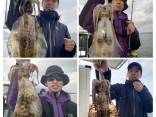ヒラメ釣り(小人数)にて出船座布団ヒラメ75cm~キロオーバー(4匹)~9匹・コチの釣果、お疲れ様でした!!...