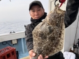 ヒラメ釣りにて全体で、65㎝キロオーバー(6匹)~12匹・コチ(2匹)の釣果、お疲れ様でした!!...