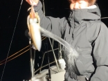 16時半に出船してポイントへ・・・・・今日はかなりうねりと風でバタバタ状態の中頑張って頂き何とかイカは1 10杯、アジは少々で泳がせはと言うと何か解らないモンスタ-が立て続けヒットしましたが、ラインブレイク残念です。私も当たりは有りましたが乗りませんでした。そうこうしてるとシ-アンカーの船近く・・・・・アンカーを上げましたが何か合点がいかない気分です。