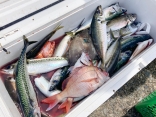 スルメイカ、ワラサ、カワハギ、アジ、マダイ