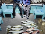 午後便のお客様 3名ヒラマサ 70〜75cm 4本真鯛 40〜66cm 7枚ハマチ ワラサ 60〜71cm ...