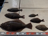 ヒラメ&甲イカ釣りにて座布団ヒラメ75㎝・50㎝~6匹・潮ぬるみに甲イカ釣り、全体で(直入れ20杯)の釣果、...