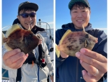 カワハギ便で出船しました。潮なし、風なしの状況で、終日反応があまりありませんでした。厳しい釣りになりましたが...