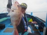 10月3日   (金)真鯛   0。5~3.7kg   0~6尾テンヤ真鯛  大鯛を 1人で3尾揚げる3.7...