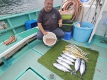 10月12日(日)鈴鹿市からお越しの富沢さんたちの引本湾内ジグサビキでの釣果です!ハマチやツバス、良型シロア...