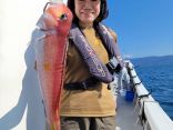 釣果は真鯛、アオハタ、マハタ、沖カサゴ、レンコダイ、サバ等です。