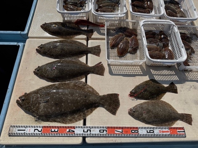 【ヒラメ釣り】座布団ヒラメ71cm(4.3k)~45cm(1.1k)4匹~6匹・