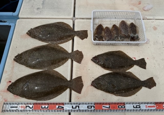 50㎝ヒラメ(3匹)~5匹・甲イカ(5杯)の釣果、