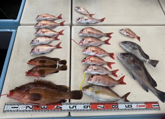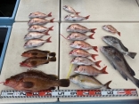 マダイ60cm~50cm(7匹)~27匹・ネリゴ(3本)・ヤズ(1本)・中ヒラメ・アコウ・