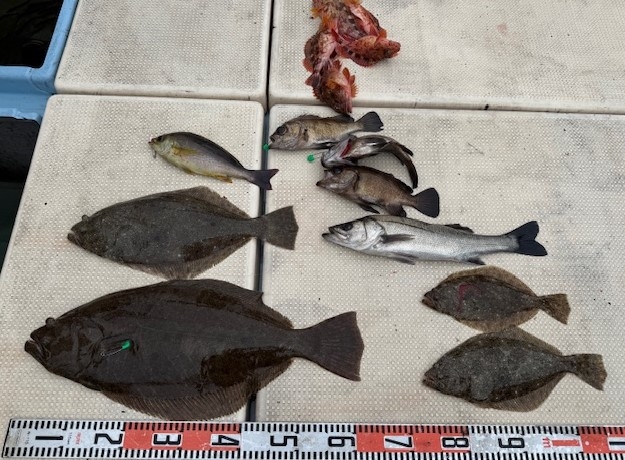 全体で、甲イカ(44杯)・ガンゾウヒラメ(2匹)の釣果、