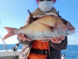 マダイ60cm~7匹・イサキ(44匹)・クロ(2匹)の釣果。