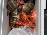 マダイ60cm~7匹・イサキ(44匹)・クロ(2匹)の釣果。