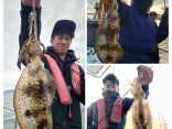 ヒラメ釣りにてヒラメ63㎝・60㎝~13匹・チヌの釣果、寒い中、お疲れ様でした!!