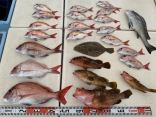 マダイ釣りにてマダイ65cm~45cm(7匹)~26匹・50cmアコウ~9匹の釣果、コンディションの悪い中、...