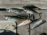 アジ 28~40cm 8匹、サバ 33~35cm 2匹、小鯛 20~29cm 3匹、ガシラ 18~24cm 5匹、他イシモチ、小アジなど