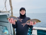 アジとタイラバと黒グチ狙い!3名様と行く乗り合い便!アジ6匹、サバでした。