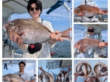 京都市のお客さん3名。真鯛、イサキ、馬面ハギなど。フカセ釣り、天秤仕掛けなどにて。フカセ釣りはアンカー方向へ...