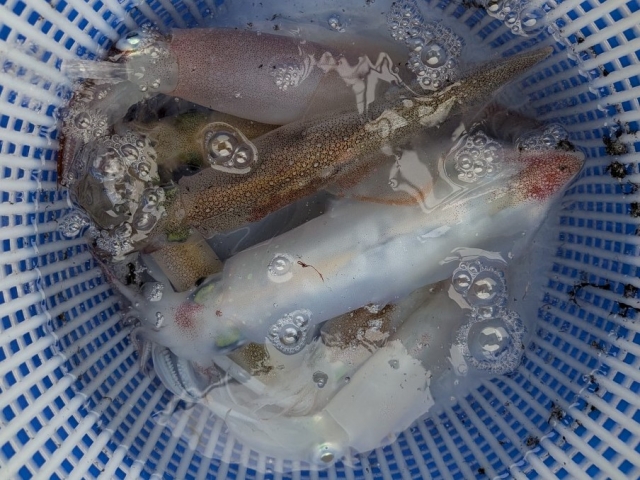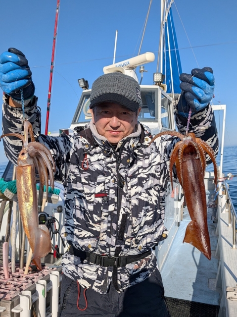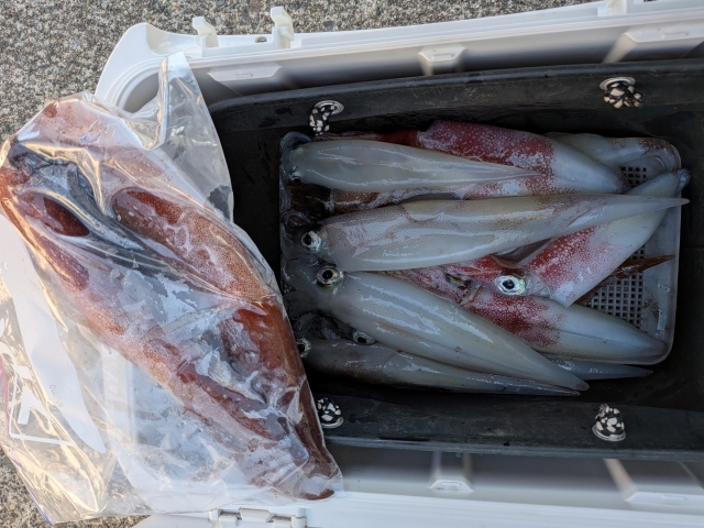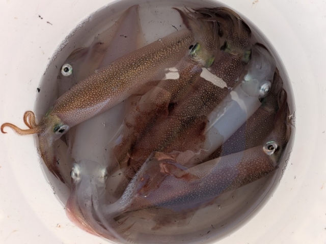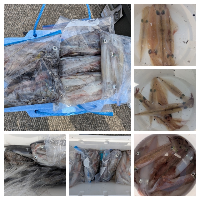 ヤリイカは最高で4点掛け迄でダブルヒットは何回もありそれなりに釣っていただけました。ゲストにケンサキイカ多数とスルメイカ少々の釣果でした。
