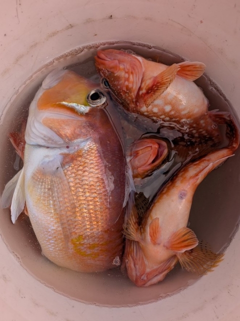 アマダイ・ウッカリカサゴ・オニカサゴ・マハタ・レンコダイ・ツバイソ・カジカの渋い釣果でした。