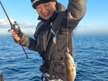 今日も昨日と同じく120 M の流し釣りです、 今日は昨日と変わって 海は大荒れでした 、風が強くアンカーも効きにくい状態でしたが 、いいことに潮がよく流れていました、 11時頃から 1時ぐらいまで 入れ食い状態になりまあまあの釣果でした