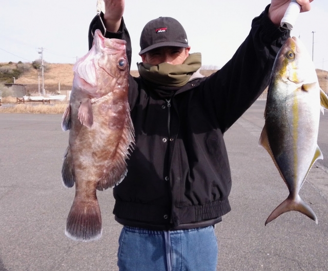 釣果・ワラサ5.1㎏1匹・カサゴ1.6㎏1匹・2.2㎏1匹