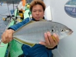 松崎沖水温 23℃水深 25~35m水色 普通シマアジ 1.0~2.2kg 0~3枚 船中8枚他にイサキ、イ...