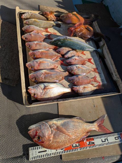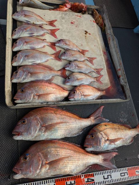 マダイ釣りにてマダイ55cm(3匹)~25匹・良型アコウ53cm~12匹の釣果、お疲れ様でした!!...