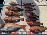 甲イカ&マダイ釣りにて【甲イカ釣り、全体で25匹】マダイ釣り【マダイ60㎝~2匹・良型アコウ50㎝~11匹】...