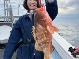 波高くポイントに到着すると女性2名様ダウン睡眠不足も要因だそうです。一度も竿握っていませんでした!男2名様も船酔いしながらの釣りで釣果に影響し厳しい釣りになりました!体調悪い中頑張られました。お疲れさまでした!