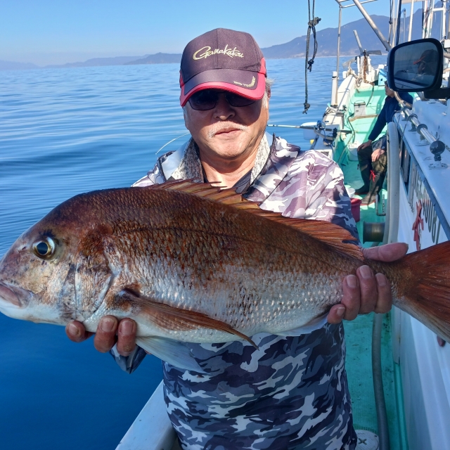 今日は風も波も、さほどない絶好の釣り日和ご覧の4.1キロを頭に大型の真鯛が多く大漁でした。