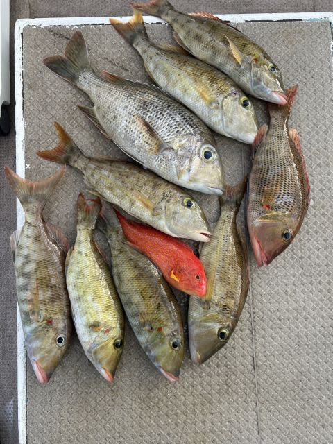 ジギング・タイラバでアカジン、オニヒラアジ(ガーラ)、イソフエフキ(くちなじ)、オジロバラハタ(ながじゅーみ...