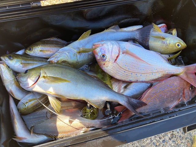 今日もカイワリイサキ主体に9種類の魚たちが顔を見せてくれました。カイワリ,イサキ,マダイ,メジナ,ハナダイ,...