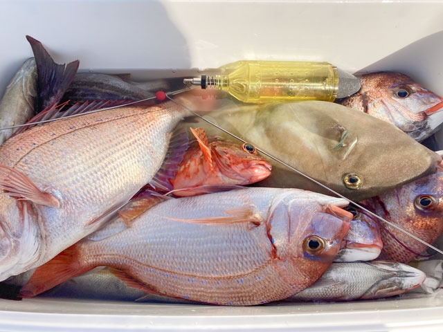 主なターゲット ハナダイ、マダイ、ヒラメ、アジ、ヤリイカ