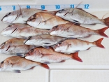 次々と竿を曲げ53cm・64cmをはじめ、1時間位で鯛を6~7匹、コチを3匹位も釣ってしまいました。