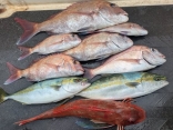 アカハタ・ハタなど魚種豊富に釣れました(船中の釣果です)水温26、1度海上おだやか