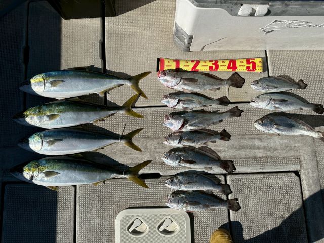 | 特徴 | 大阪南部に位置する、田尻漁港発の遊漁船です。 南大阪の豊かな海で関西国際空港や淡路島を眺めながら快適に時間をお過ごしください。 季節によって様々なお魚を釣ることができます。 『初めての方、経験の浅い方、女性も安心して気軽に楽しんでいただきたい』 そんな思いで、手ぶらで気軽にフィッシングをご提供いたします。 |