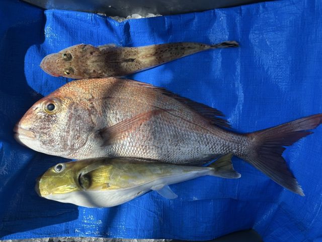苦戦の果てに真鯛、コチ、サバフグでした。