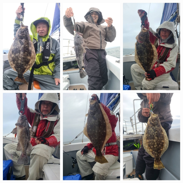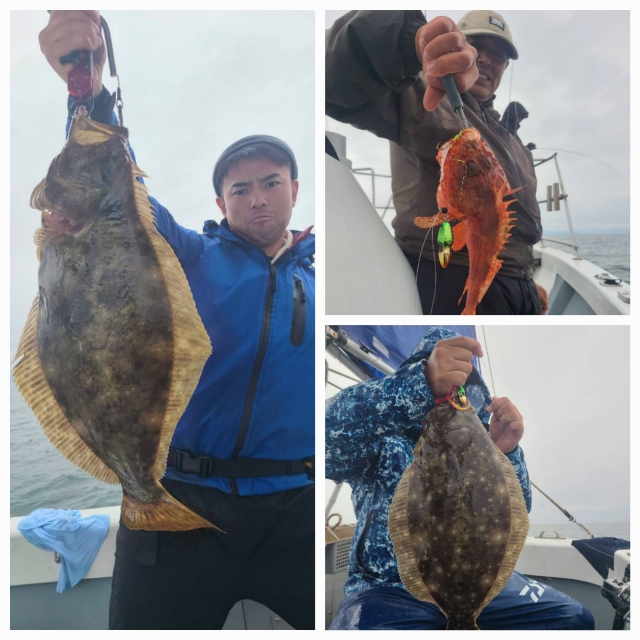 あいにくの雨模様でしたが、1流し目からヒラメ、根魚等ポツポツと釣れてくれました!  その後中だるみも有りましたが後半もポツポツと最後まで釣れて良かったです!