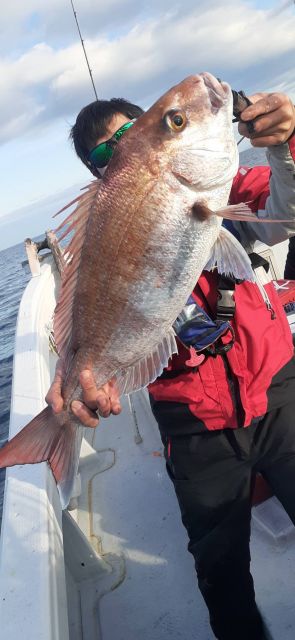 たまらず場所移動したらフグはいなく直ぐにナナマルオーバーの真鯛が2枚上がり