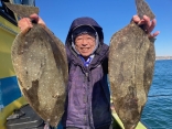 1月4日 (日)ヒラメ 0.4~5.7kg 2 ~12枚他に マゴチ マゾイ イナダ5.7kgの特ヒラ...