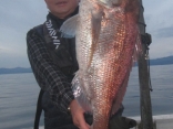 大津市の東原さん1名。真鯛43cm~75cm4尾(良型59cm以上2尾)、サワラ75cm、他に真小鯛、良型馬...