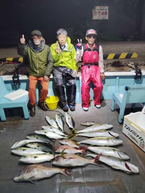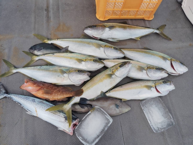 アジ、メダイ、ハマチ、マイカ、ヤリイカ