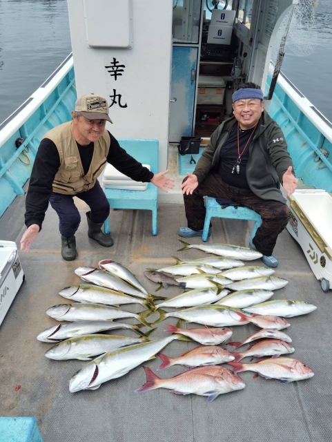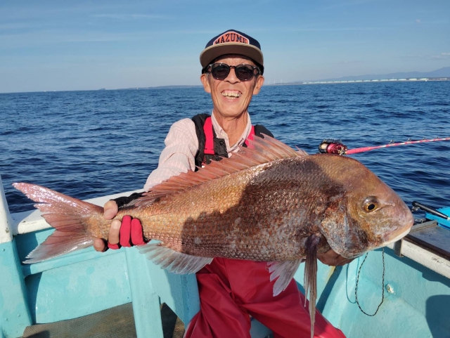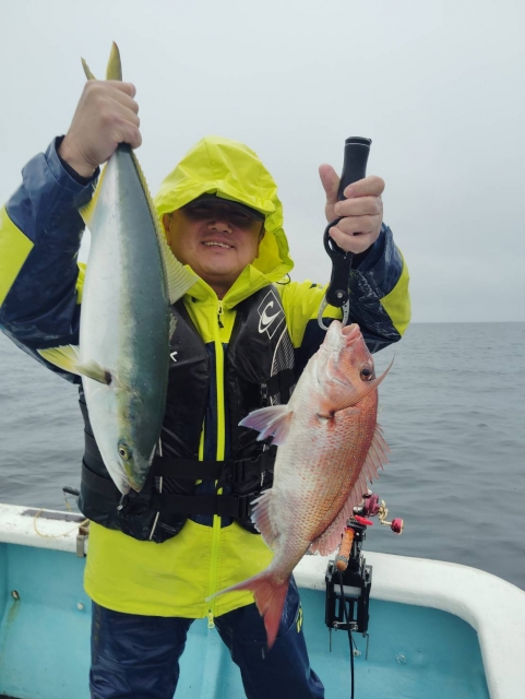 大津市の東原さん1名。真鯛43cm~75cm4尾(良型59cm以上2尾)、サワラ75cm、他に真小鯛、良型馬...