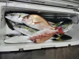 午後便のお客様 3名真鯛 43 48cm 2枚ワラサ 68〜72cm 10本その他 イサキ ウマヅラハギ...