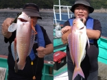 カツオ 1.2-1.3kg 7匹シーラ 41-53cm 5匹カツオ狙いで、オキアミで天秤ふかせ釣り!何と何と...